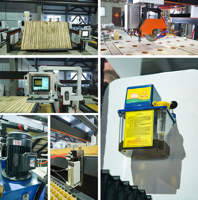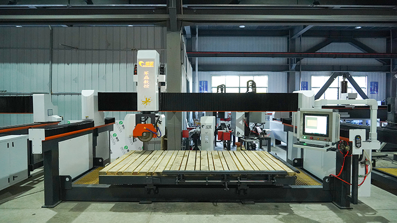 Four axis infrared bridge cutting machine with spindle is widely suitable for processing granite, marble, artificial stone, slab and other types of stone. The machine head can swing at any angle and can cut the plate at any angle and shape.And the stone cutting machine can also cut the large plate with 45°chamfering, opening the basin hole, stove hole, and diagonal cutting.