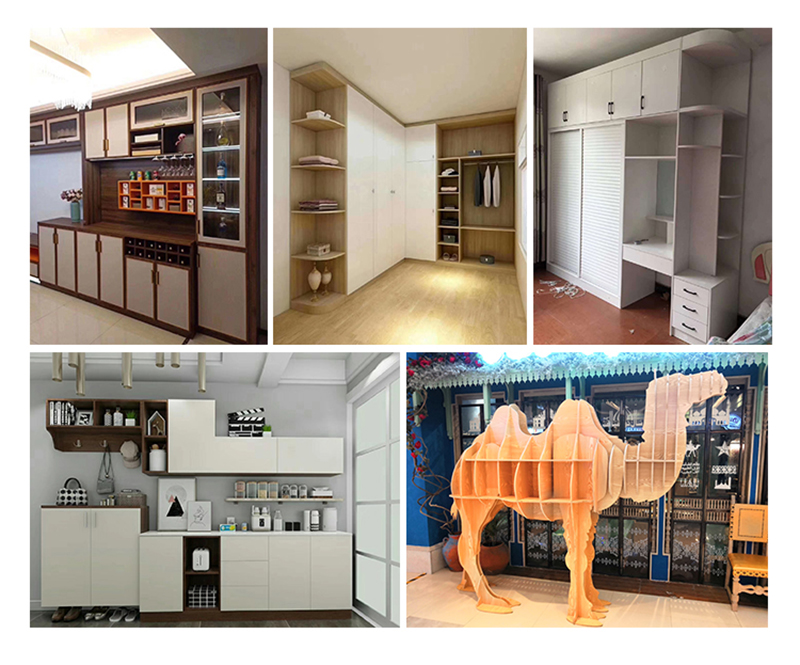 Panel furniture, cabinets and wardrobes, office furniture, customized furniture. Auxiliary processing such as flat cutting, milling, chamfering, punching, carving, etc. for wardrobes, cabinets, computer desks, panel furniture, office furniture, wooden speakers, wooden kitchenware, and other panel furniture.